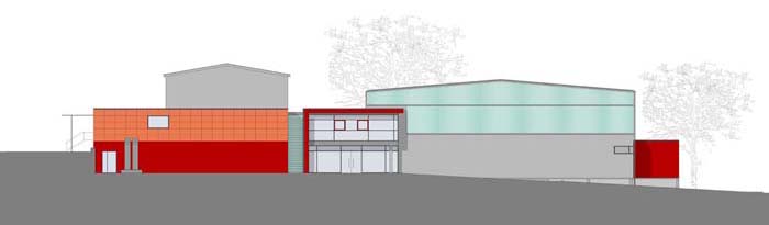 Die bestehende Einfachsporthalle steht als zweigeschossiger Bau im Hang zur Volksschule. Im Erdgeschoss befindet sich die alte Sporthalle, im Untergeschoss die Schwimmhalle. Beide Nutzungseinheiten erhalten ihre Belichtung über die nordöstliche Mainseite. An der bestehenden Halle schließt sich ein flach abfallendes Grundstück zum unteren Wiesenweg an. Dreiviertel dieser Fläche wird bei einem hundertjährigen Hochwasser überflutet sein. Auf Grund dieser besonderen Gegebenheiten hat die Stadt Wörth einen Architektenwettbewerb ausgelobt, um hier ein gestalterisch ansprechendes, funktionales und natürlich wirtschaftliches Gebäude zu erhalten.